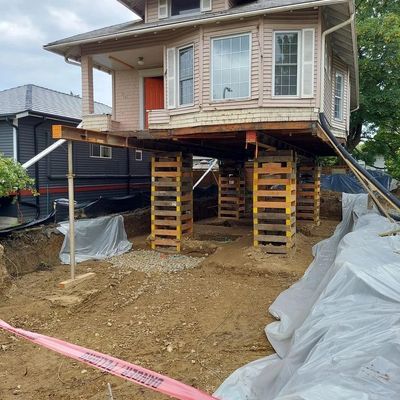 Lifted and supported existing house for new foundation expansion.