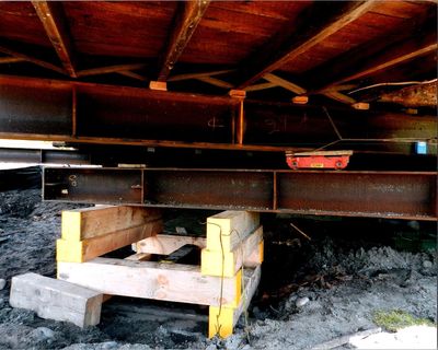 Challenging lift of an A-frame cabin sitting directly on the dirt. We devised a way to lift the structure from on top of the floor instead of underneath it.