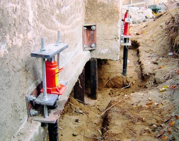 We utilize pipe piles and custom steel brackets to support foundations and prevent them from sinking. Our custom system prevents cracking and can be utilized on old foundations with poor quality concrete.