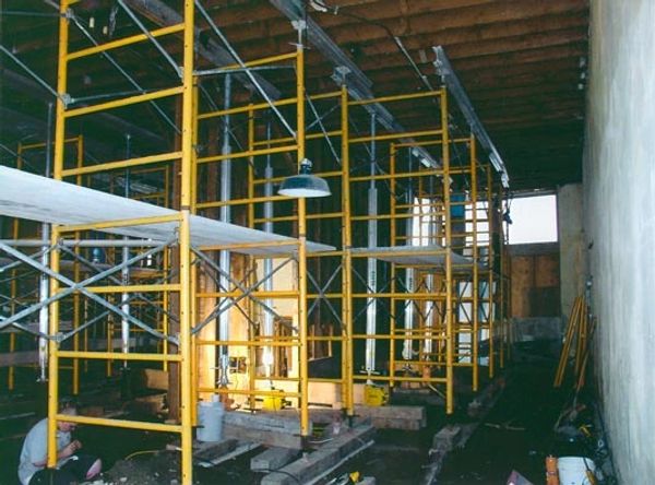 Using angle iron and all-thread plus a 50-ton jack to support the concrete during construction